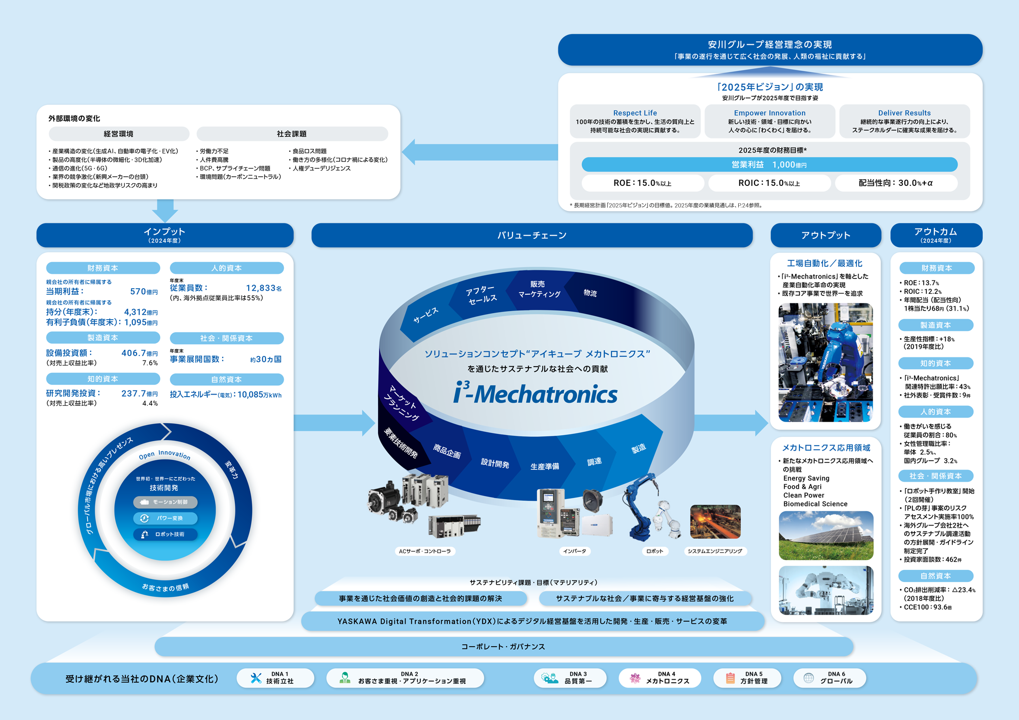 安川グループは、長年にわたり積み上げてきたユニークな強みを生かし、独自のビジネスモデルを通じて価値創造に取り組んでいます。マテリアリティへの取組みを事業価値のさらなる向上につなげ、サステナブルな社会に貢献します。